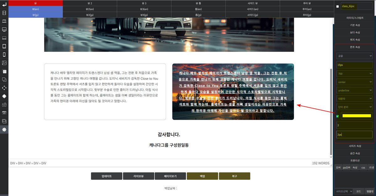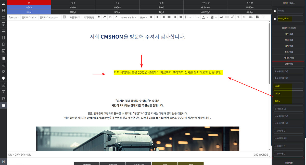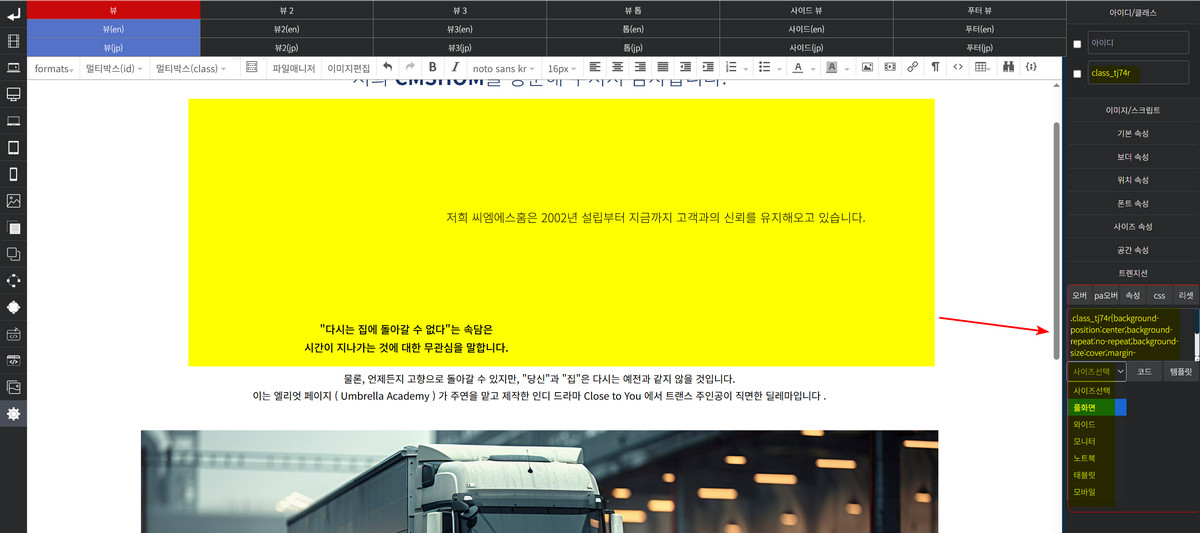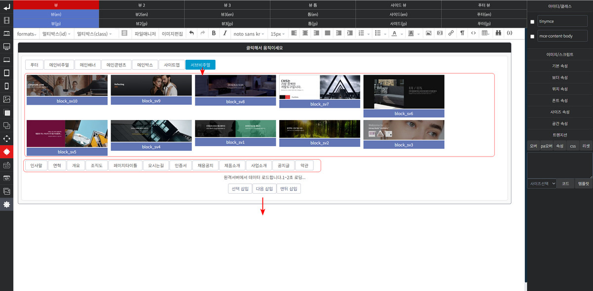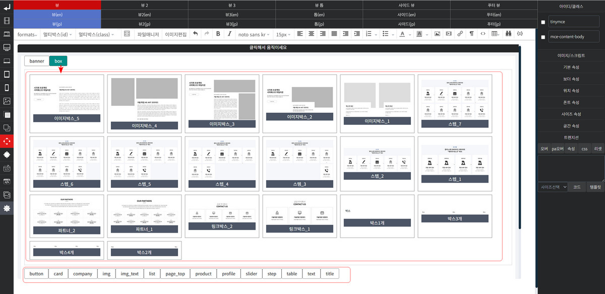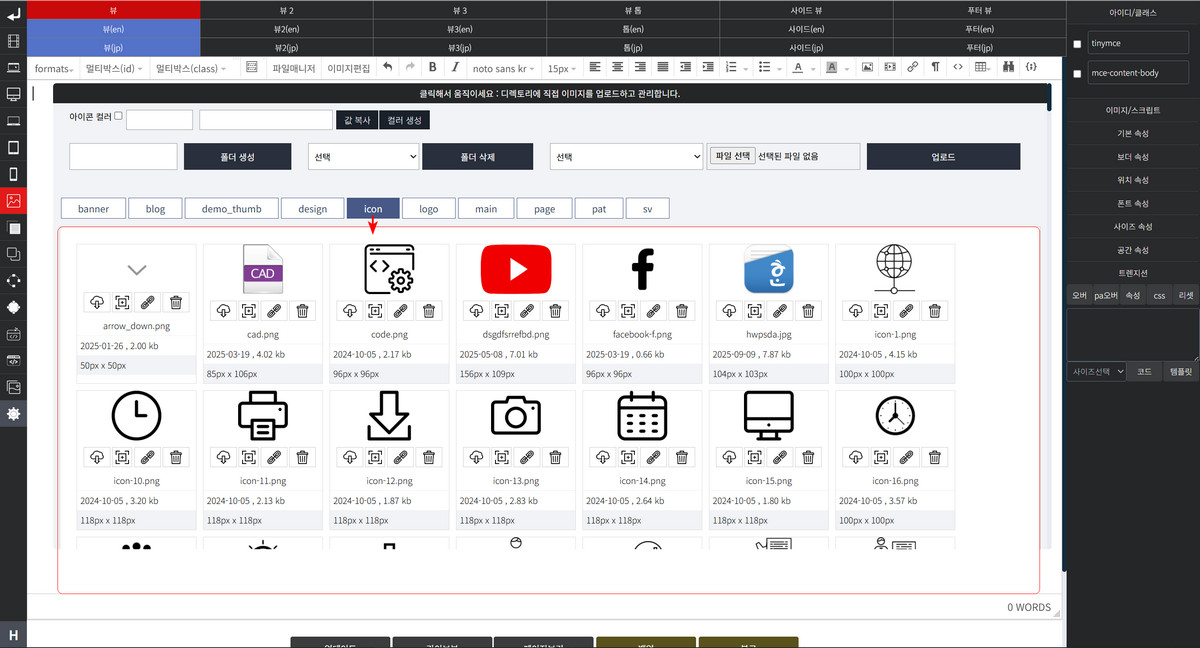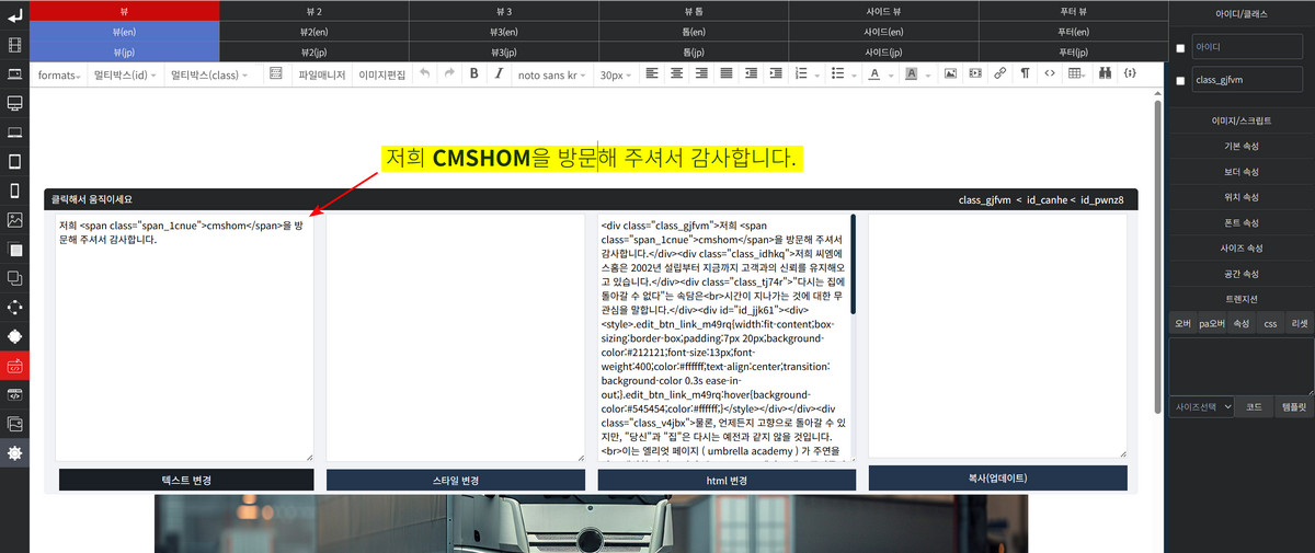 홈페이지의 유지 관리를 위한 모든 기능과 도구들을 사용하실 수 있습니다.