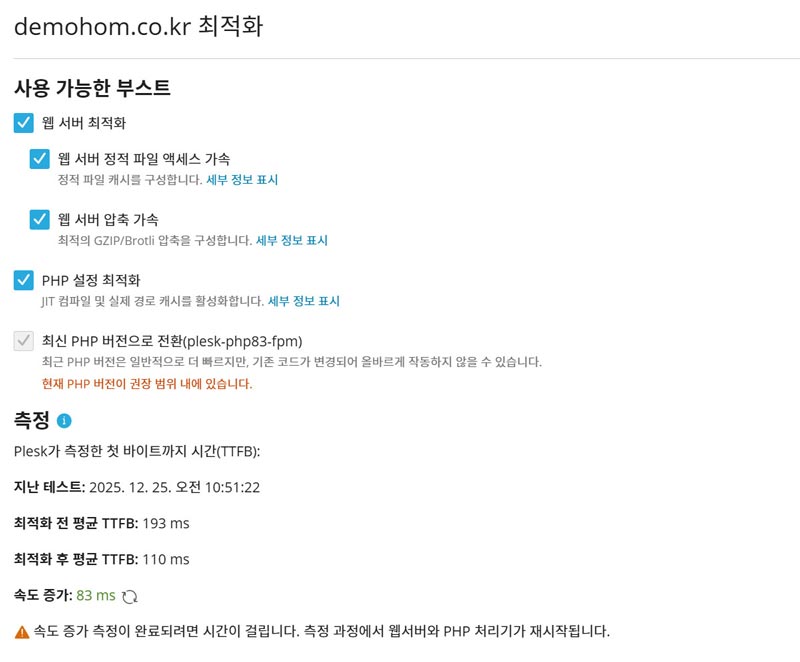 서버시스템에서 파일 접근 속도를 증가시키는 최적화 작업을 자동으로 처리합니다. 사이트의 콘텐츠 접근 속도를 크게 향상시키고 안정성을 높여줍니다.
